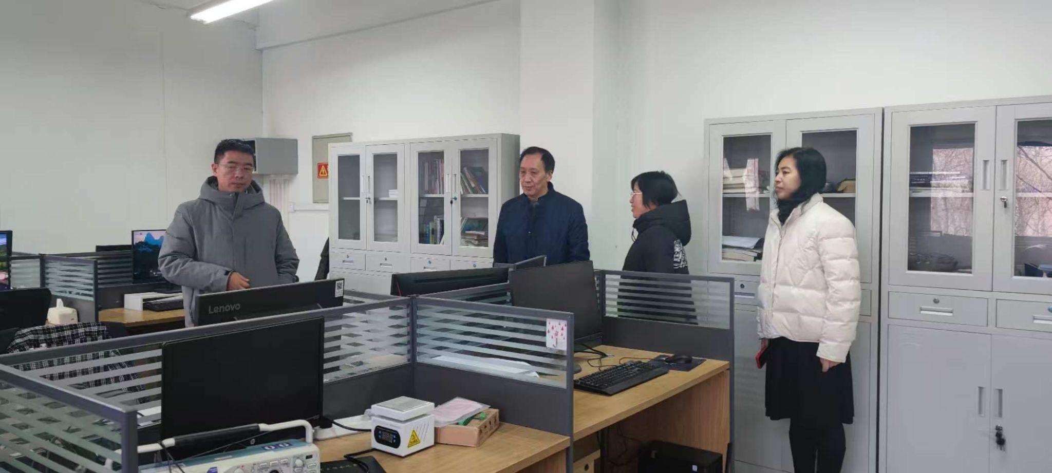 学院领导全面检查实验室安全情况,详细布置了假期安全防范事宜,查看了实验室的用电设备、安全警示标识等方面,要求严格遵守实验室安全规章制度,注意用电安全,不随意拆卸电器设备,不将易燃易爆物品带入实验室,确保实验过程中的人身安全和设备安全。