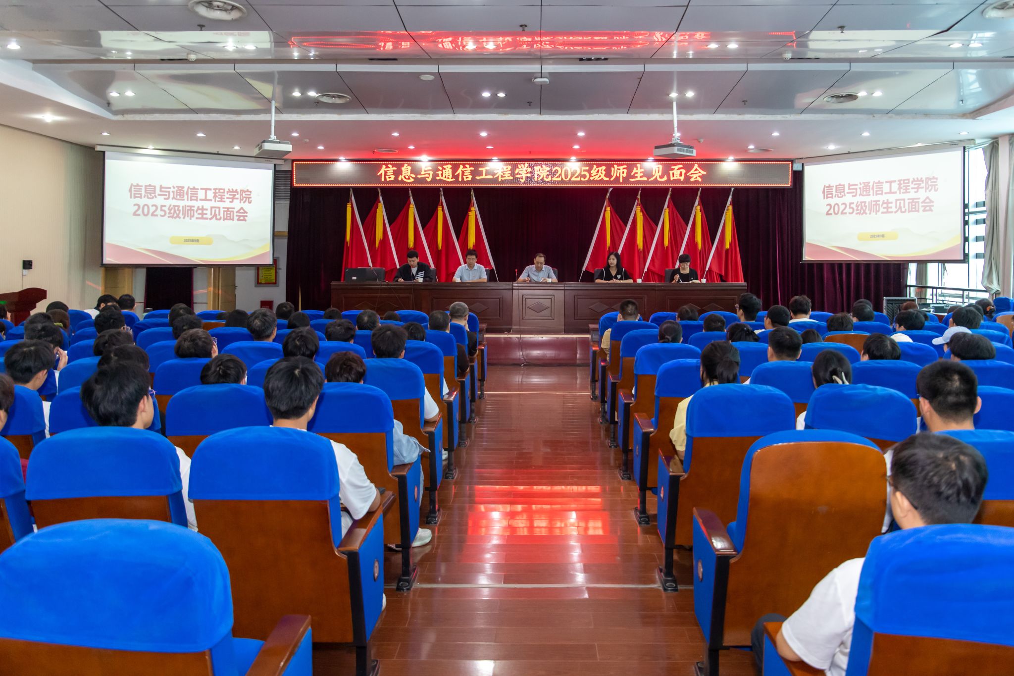 报告厅内青春洋溢、掌声雷动。学院党总支书记邹海林首先代表学院向来自五湖四海的150名本科生、47名硕士研究生表示热烈欢迎,他指出,信通学院前身可追溯至学校建校初期的电气系,五十余载薪火相传,始终与民族信息事业同频共振;今天的盛会既是欢迎仪式,更是使命传递。